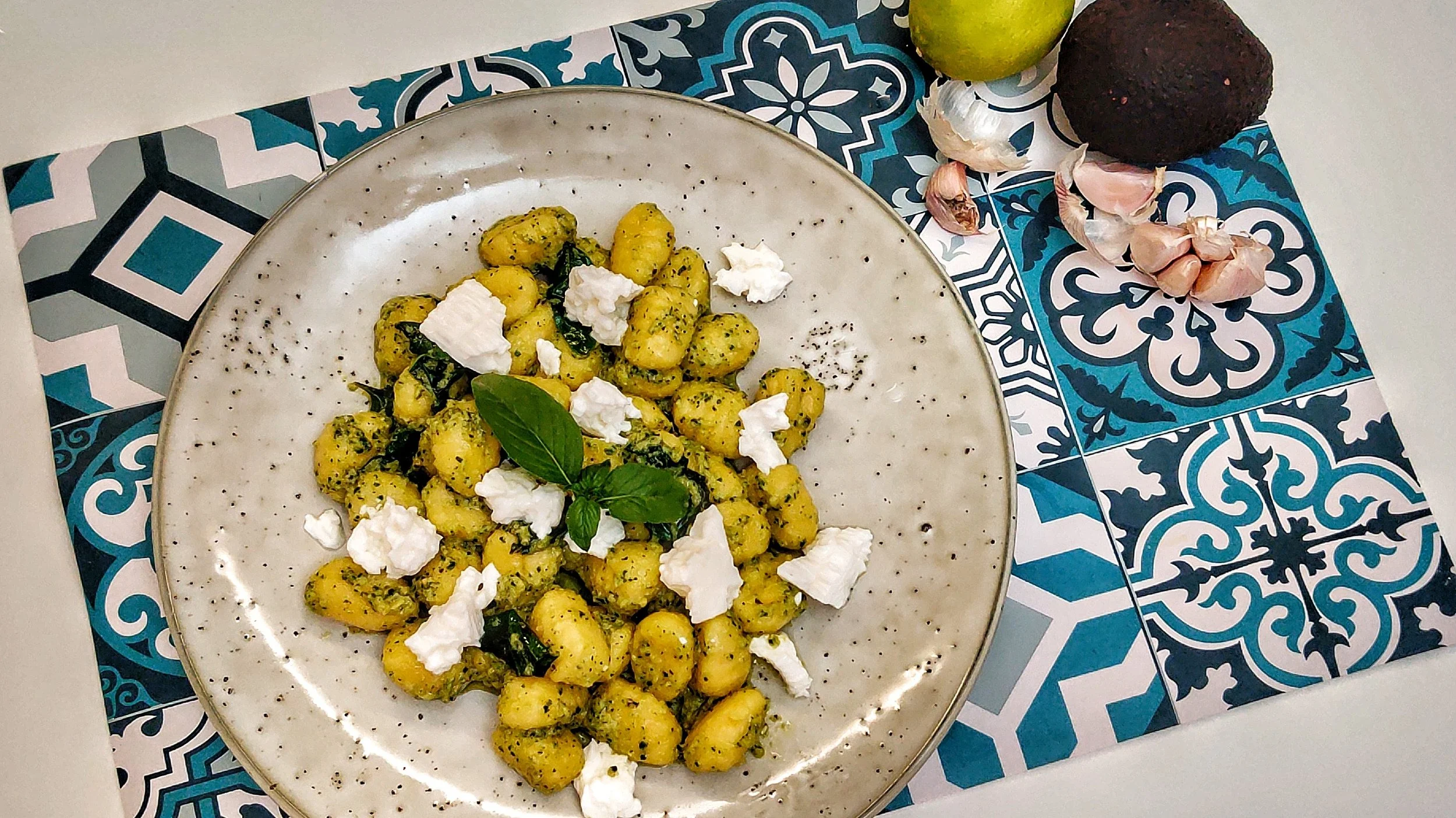 Potato gnocchi served with a silky smooth avocado & basil pesto.