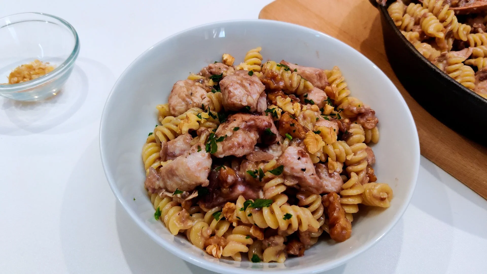 Easy to make, creamy Brie, chicken & walnut pasta.