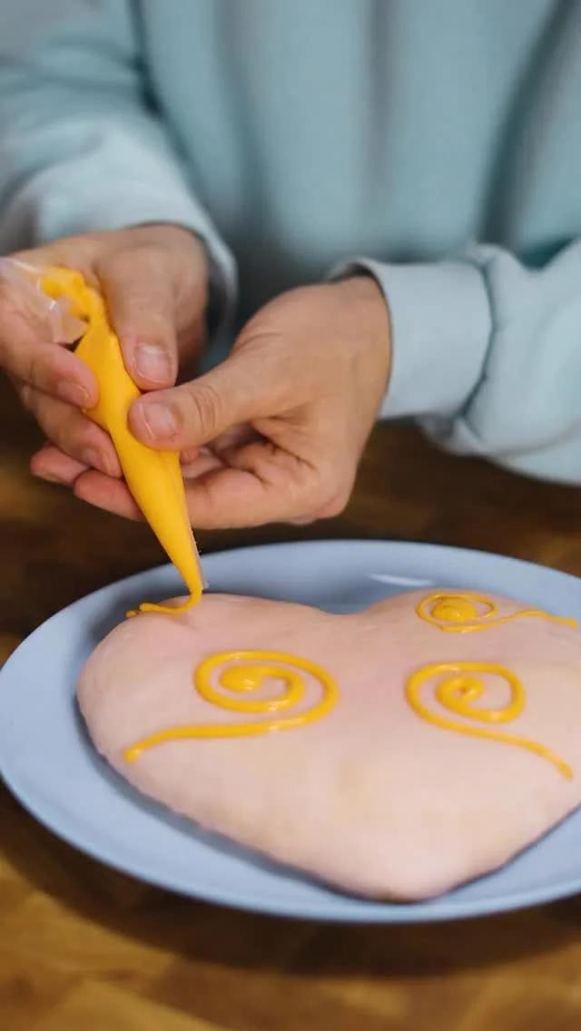Cut the sushi nori into small squares and place it on top of the cream cheese.