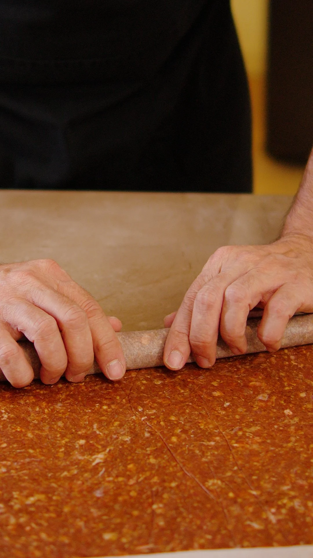 Using a rolling pin, flatten out the beef to about 1/2cm thickness.