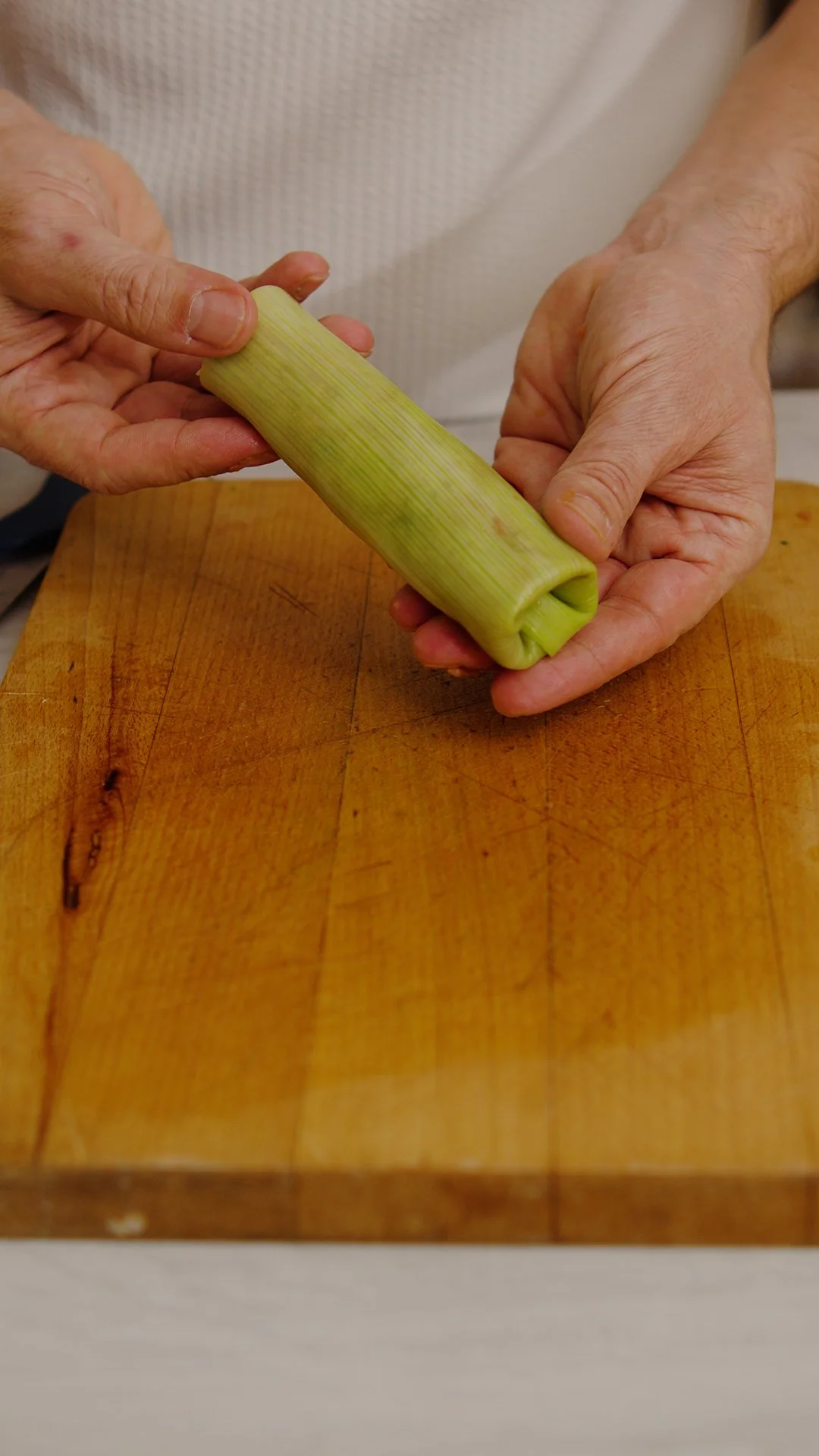 Cut the leeks from the parts near the roots and where the green leaves start.