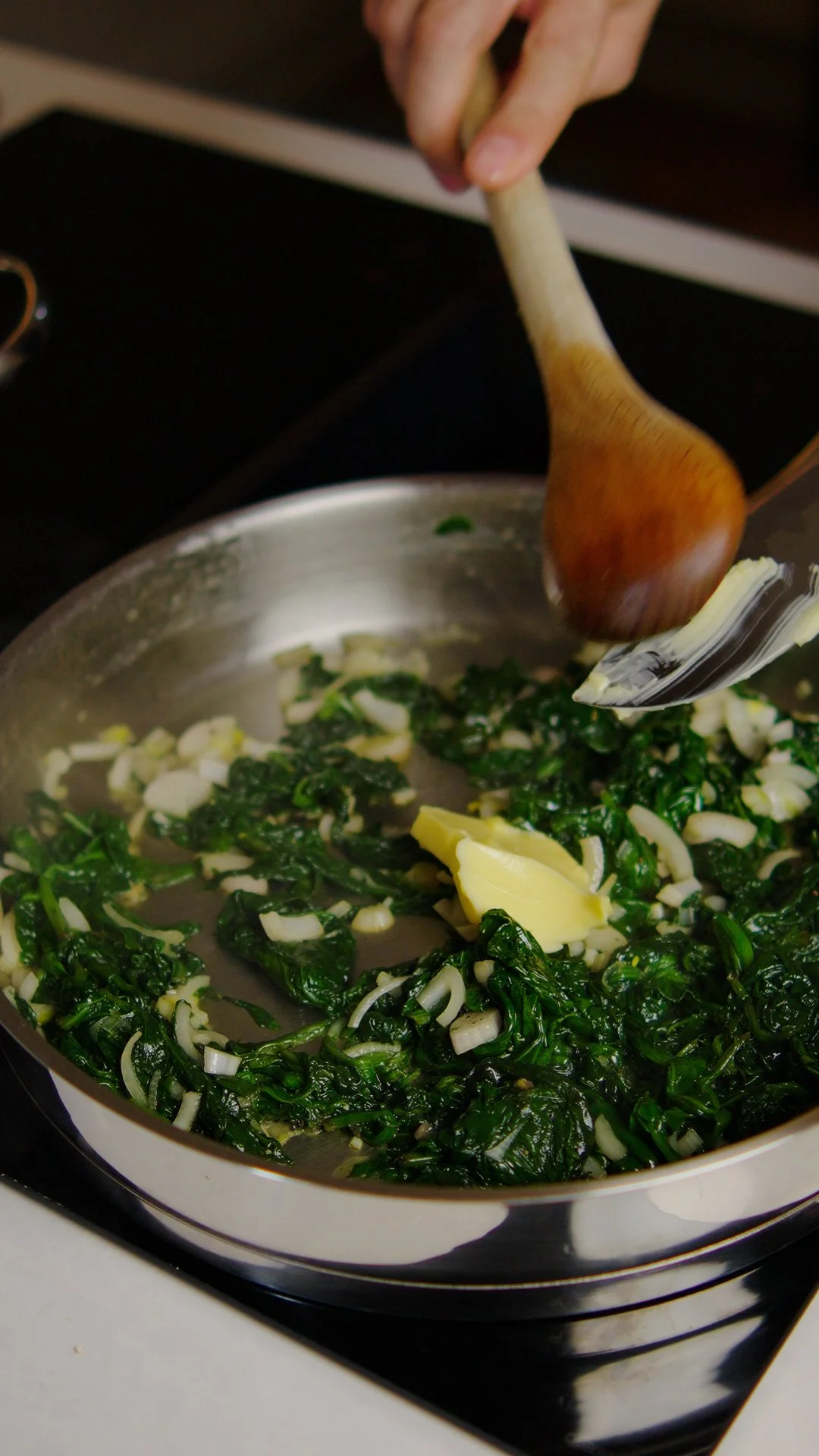 Remove the garlic from the spinach and add the onion.