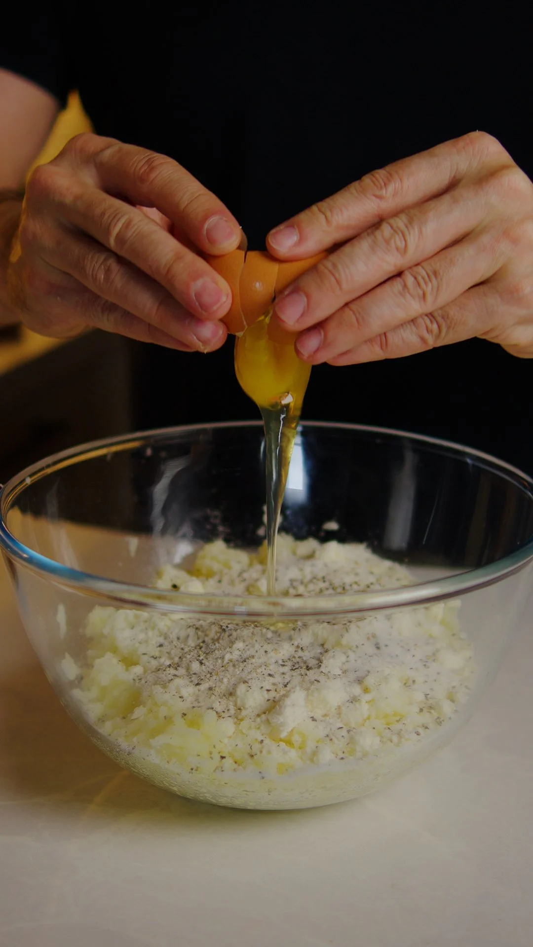 Mash the potatoes, add some grated cheese, the eggs and seasoning.