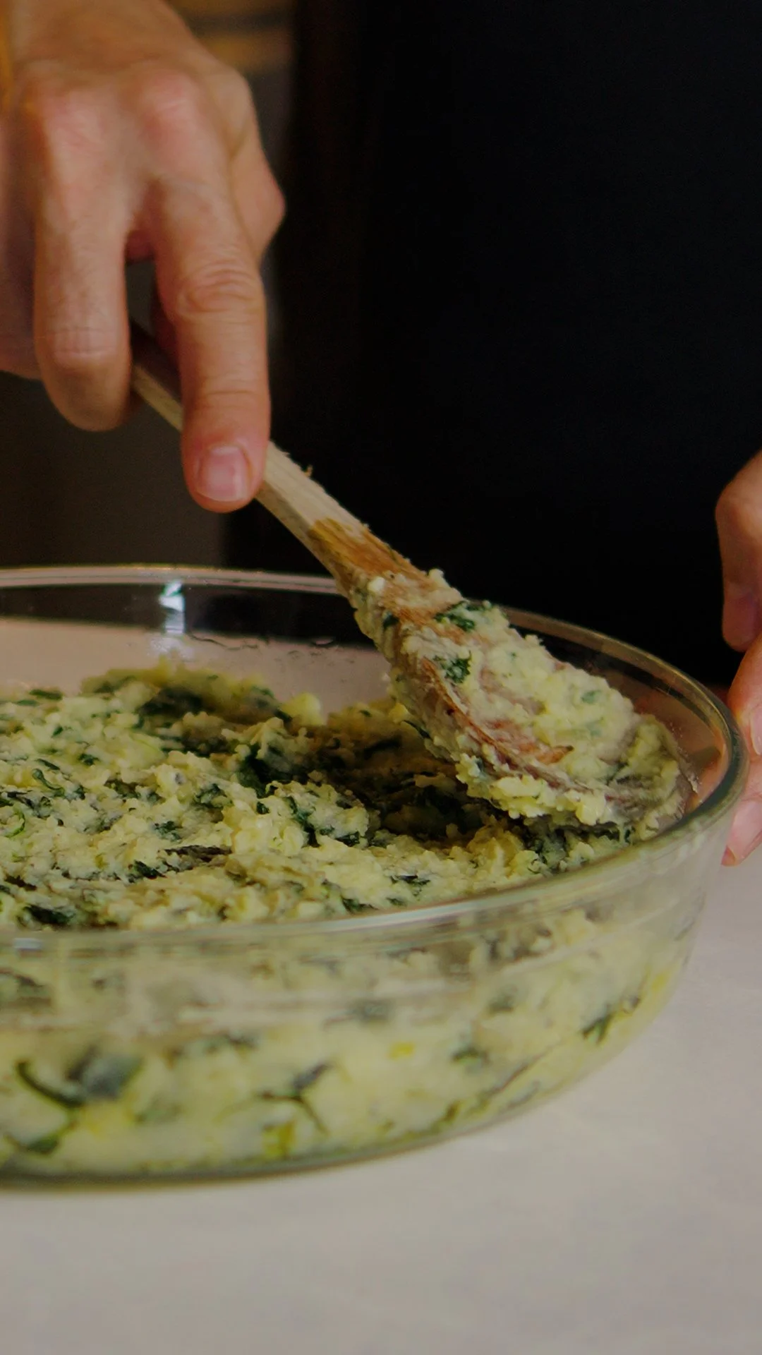 Mix well until creamy then add the spinach and combine.
