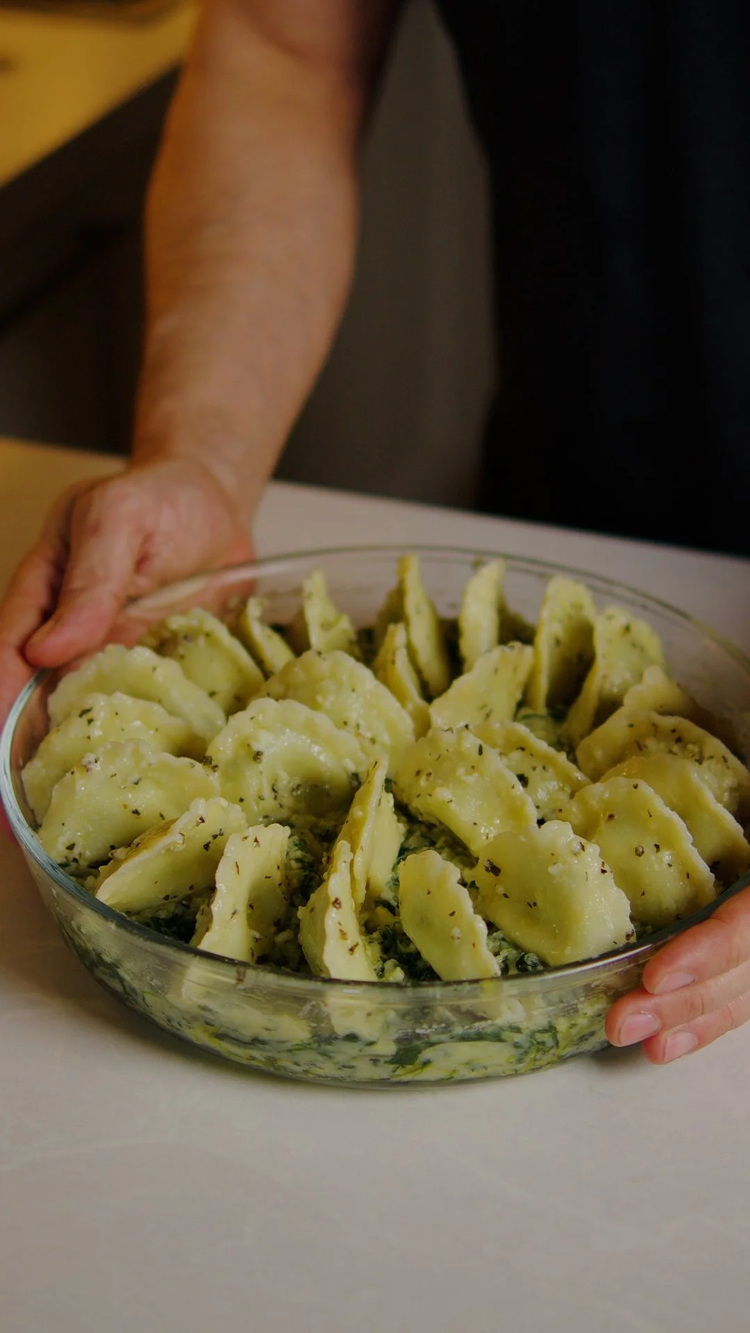Arrange the ravioli nicely onto the potato/spinach mixture.