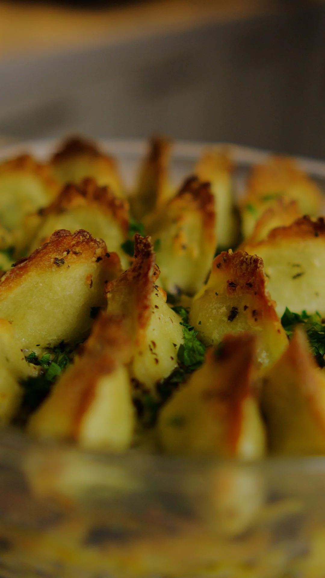 Bake in a preheated 200°c oven for about 30 minutes, until the ravioli are nice and crispy.