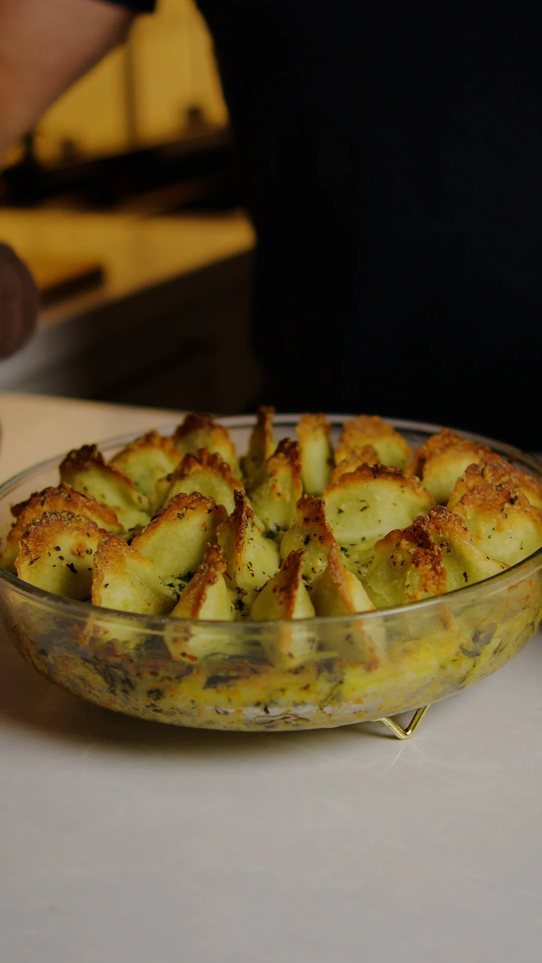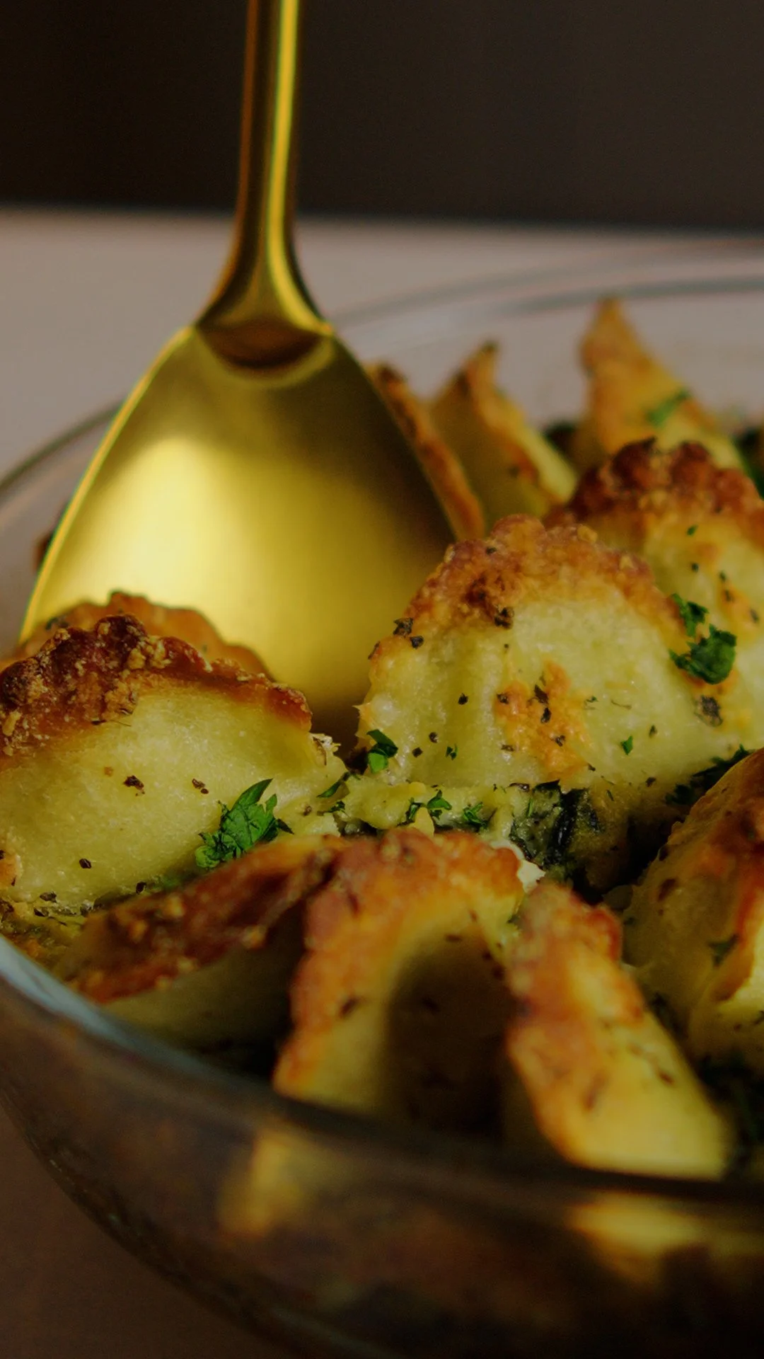 A soft potato & spinach bake topped with delicious crispy ravioli. Ideal as an accompaniment to fish or meat.
