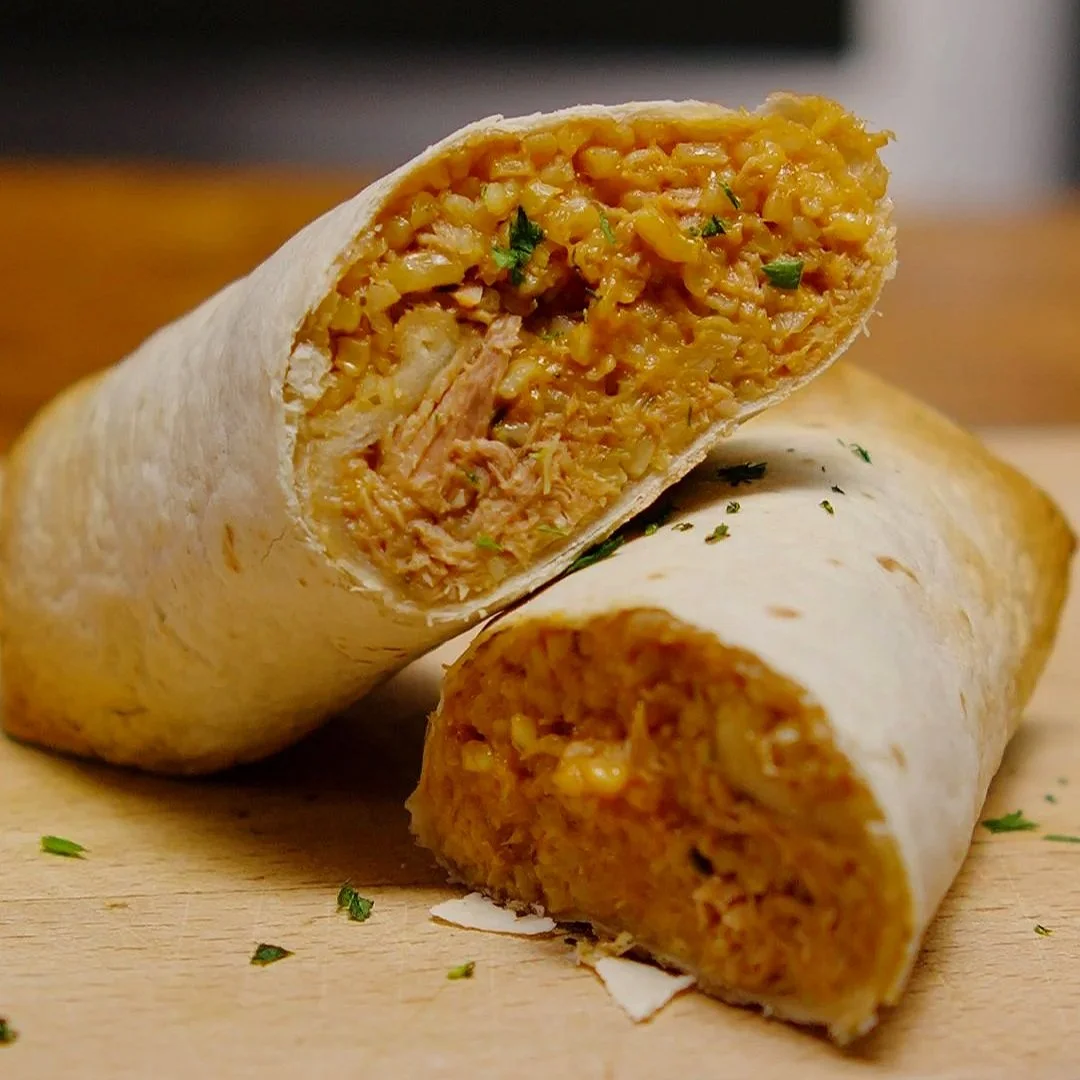 Quick lunch fix. Delicious tuna chunks and seasoned bulgar wheat enclosed in a crunchy toasted tortilla wrap.