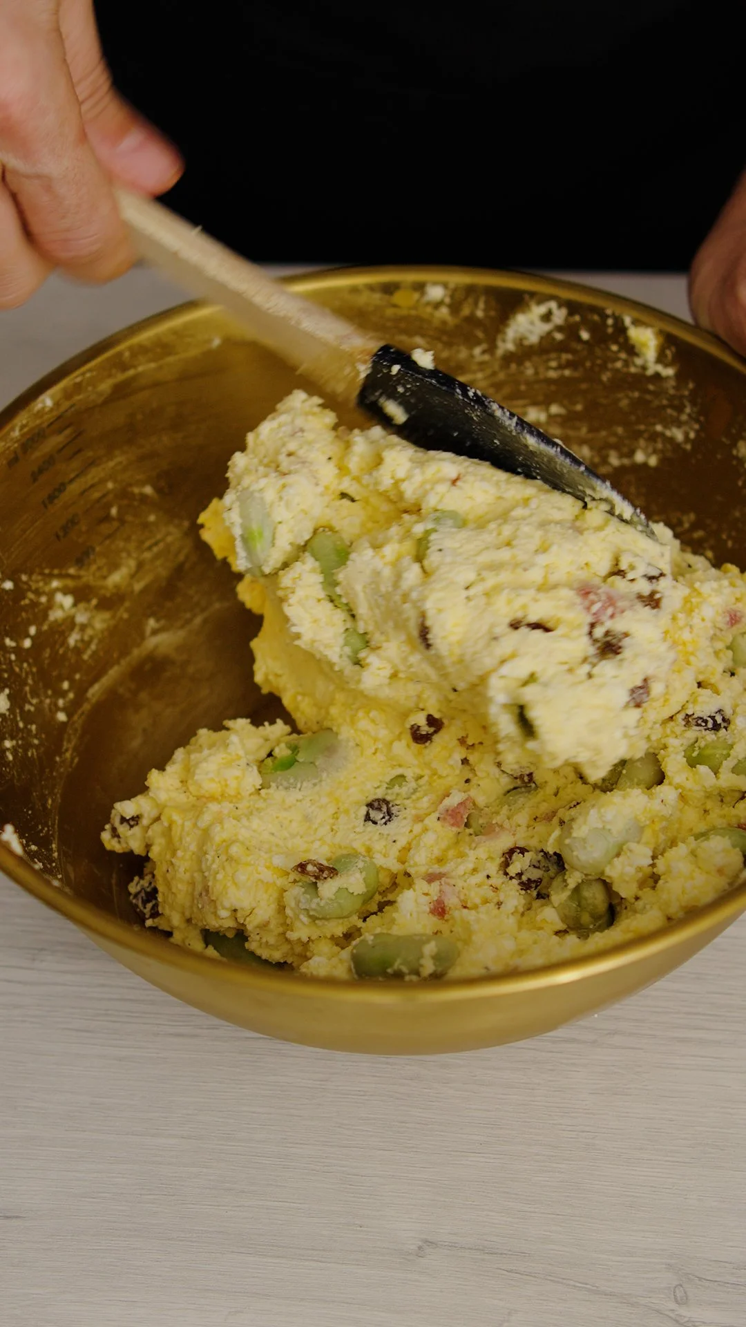 In a bowl, combine the ricotta, Kefalotyri, pancetta, broad beans, sultanas, 3 eggs, salt & pepper.