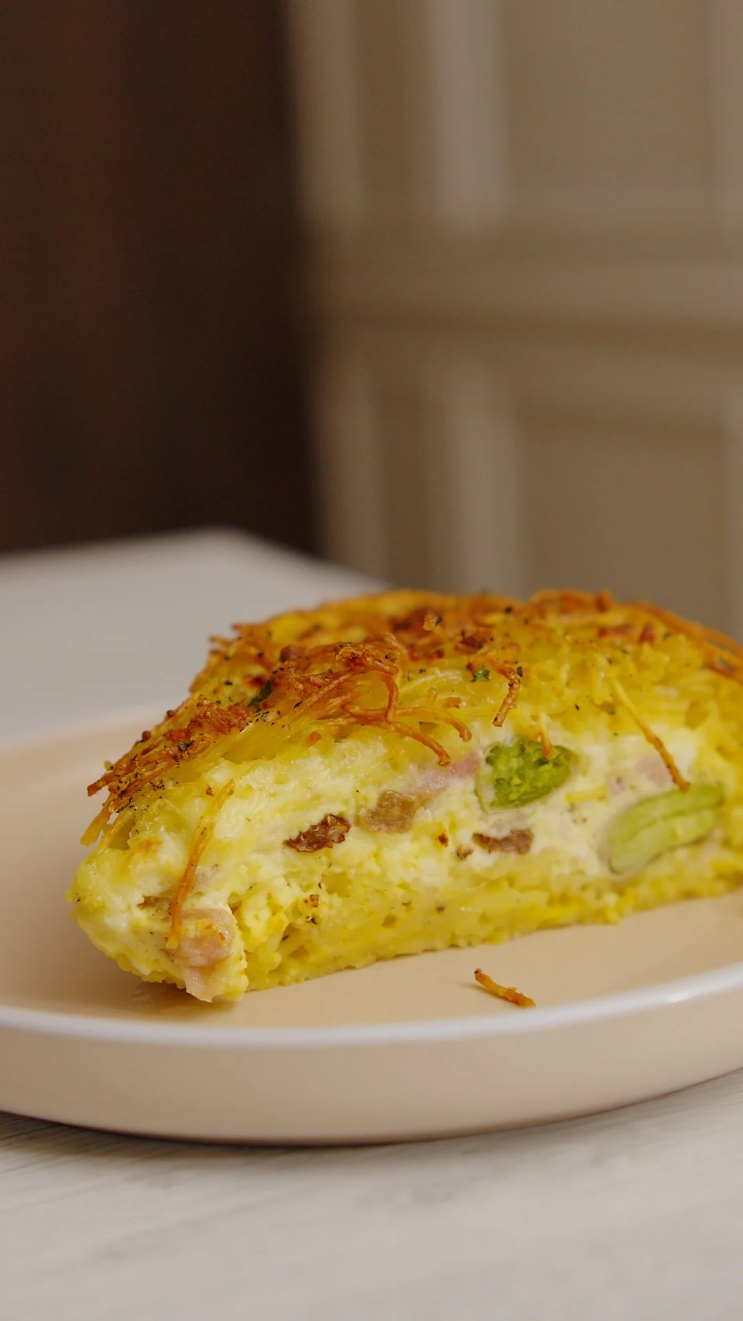 A crunchy pasta pie with a ricotta & bean center.